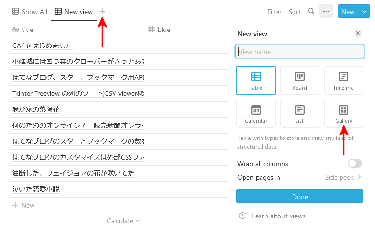 * If "+" is not displayed, click "" and click "Add View" - Click "Gallery" for the displayed view selection