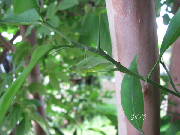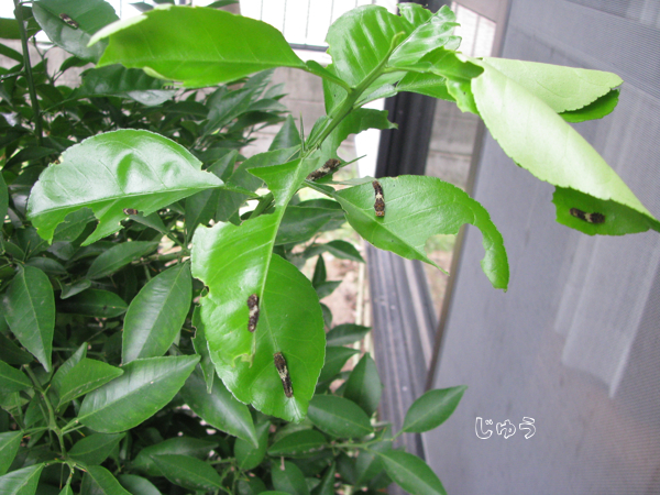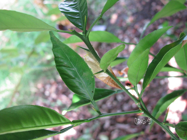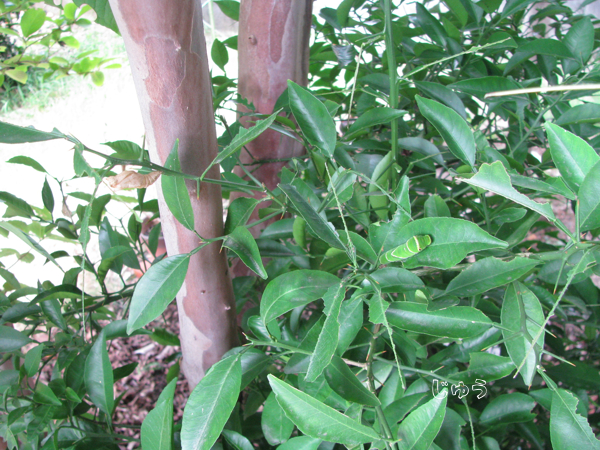 庭のミカンの木にナミアゲハ(アゲハチョウの一種)の幼虫(イモムシ)が勝手に生息しています。