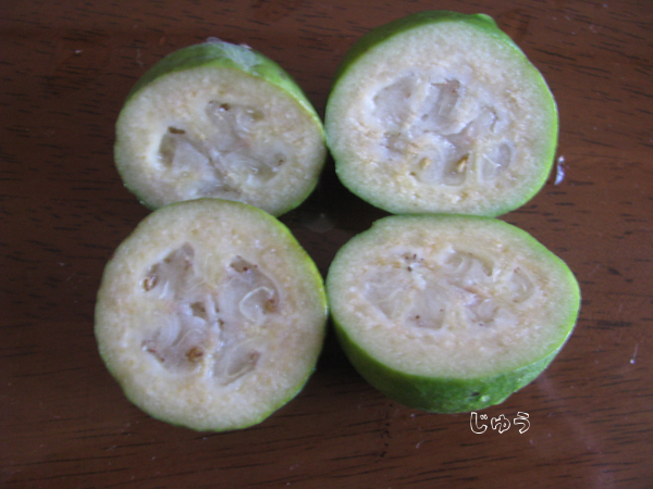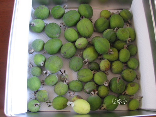 今年は、フェイジョアの実が生っている枝を切ってしまい、失敗したと嘆いていました。
