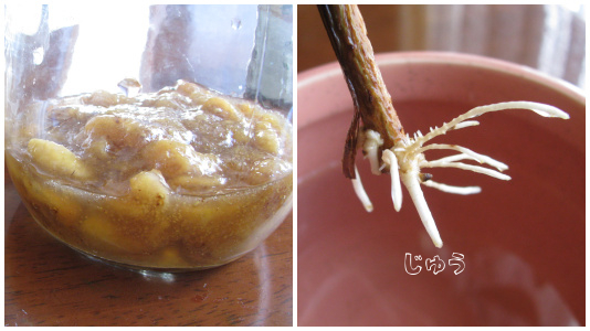 前の記事では1本出ているだけだった根が、枝分かれし、2枚目の写真では8本ほどになっています。