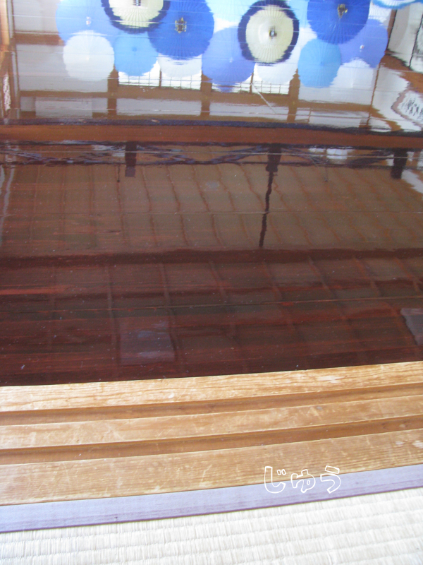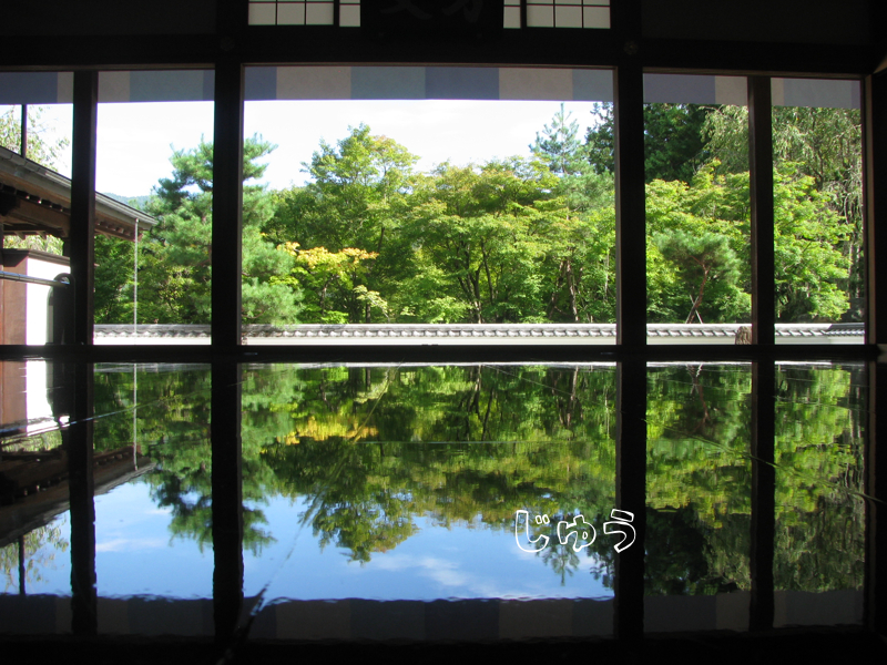 ここは「床もみじ」といって、実物のモミジとそれが床に映ったモミジが上下に対称的に見ることができるので有名なところです。