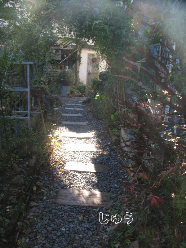 このトンネルのようなところを奥まで行ったら右にUターンすると玄関ドアがあります。