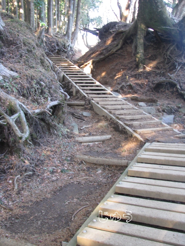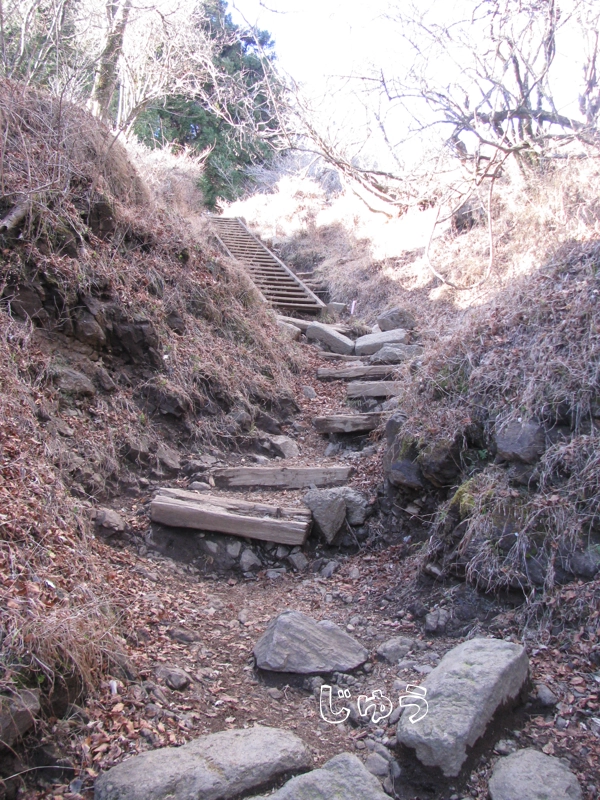 二枚目の写真の階段を昇って山頂へ行きます。