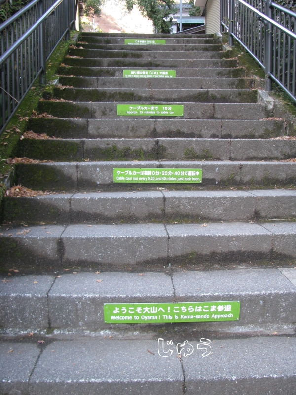 ケーブルカーの駅を降りて少し回り込むように歩くと大山阿夫利神社への階段が見えてきます。