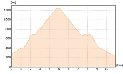 断面図を見るとケーブルカーを使わない場合、使う場合の倍の登山になるのが分かります。