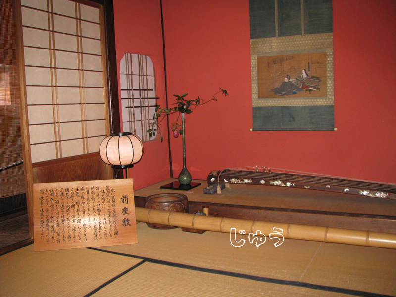 前座敷。お琴。壁の色がお茶屋らしいですよね。
