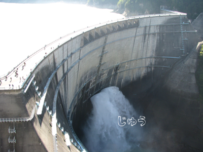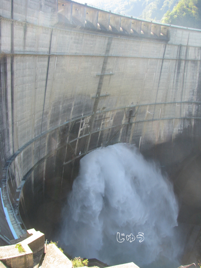 水がたっぷりでダムの一番上からこぼれ落ちそうです。