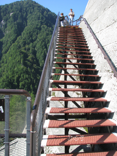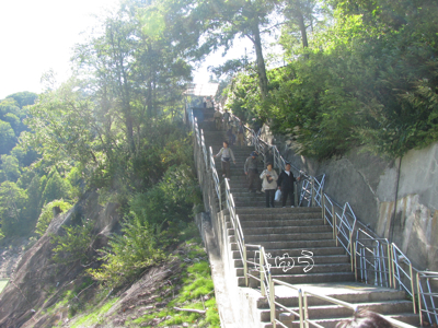 でも、次の階段は、写真で隠れた辺りからが急で、途中、2回ほど休憩しました。