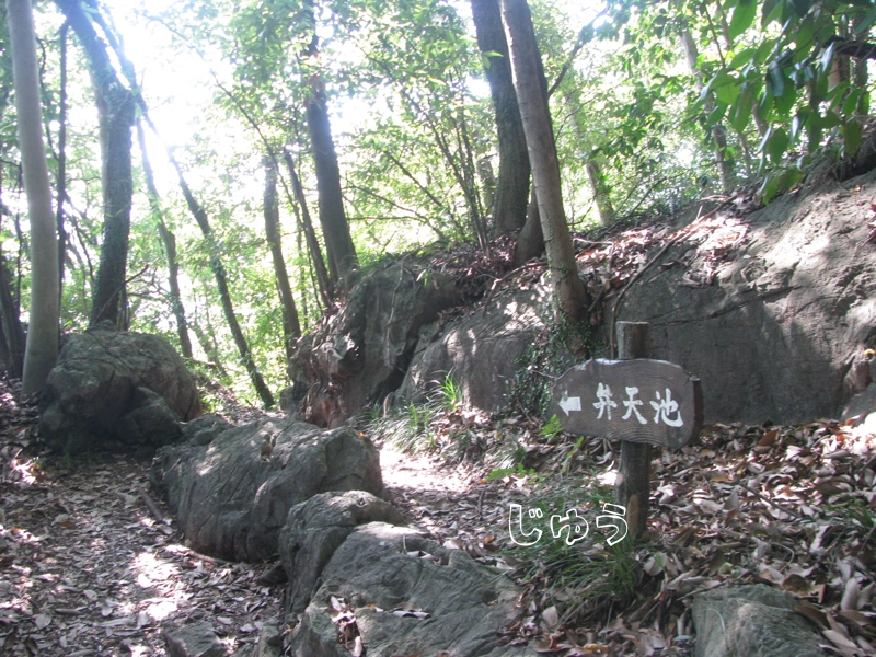 祠の所から降りてくると弁天池への道標が見えてきます。