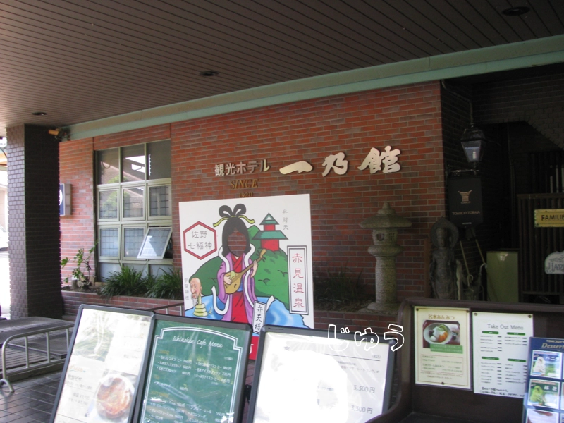 磯山弁財天の御朱印は、ホテル一乃館の入り口を入ったところでいただきます。